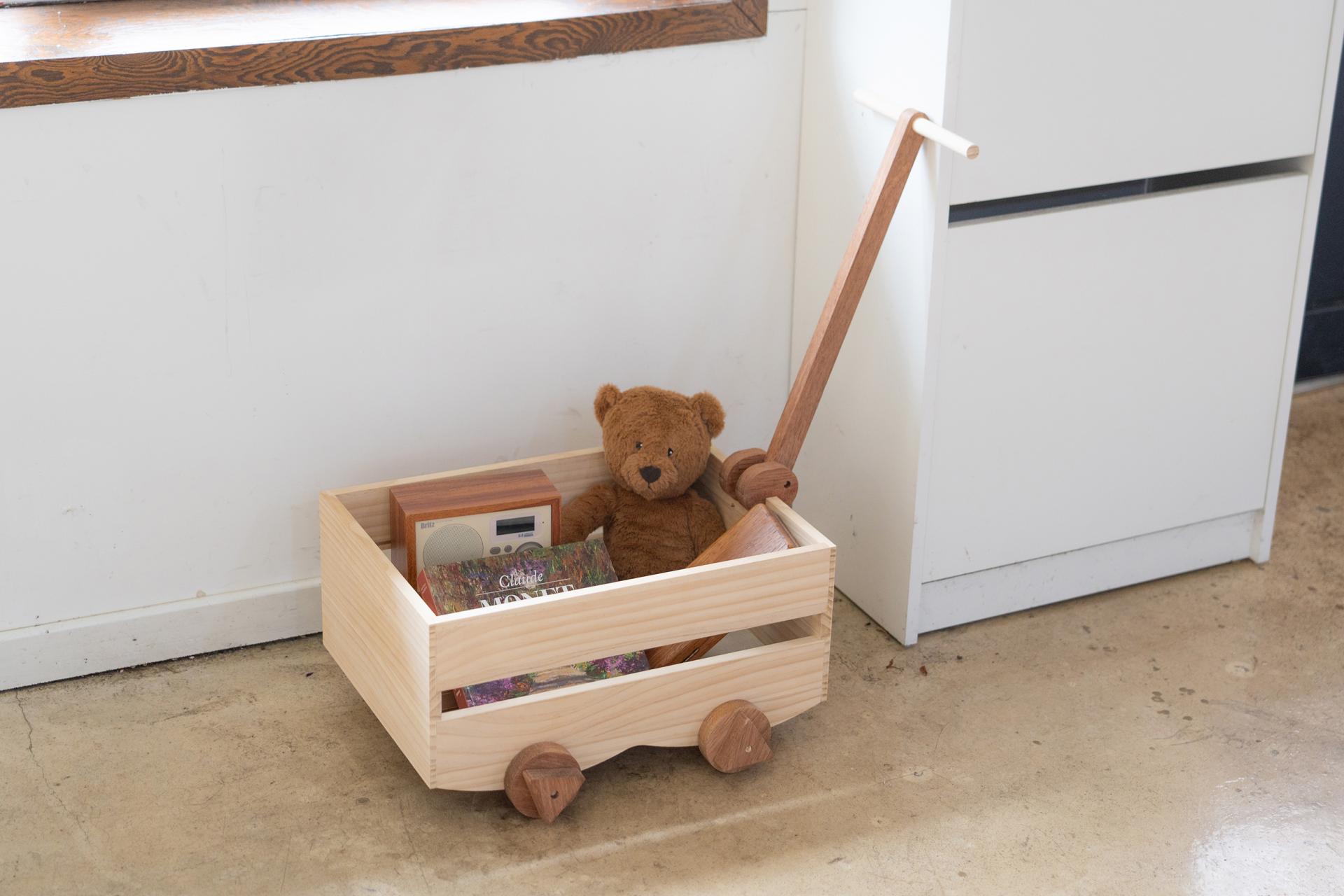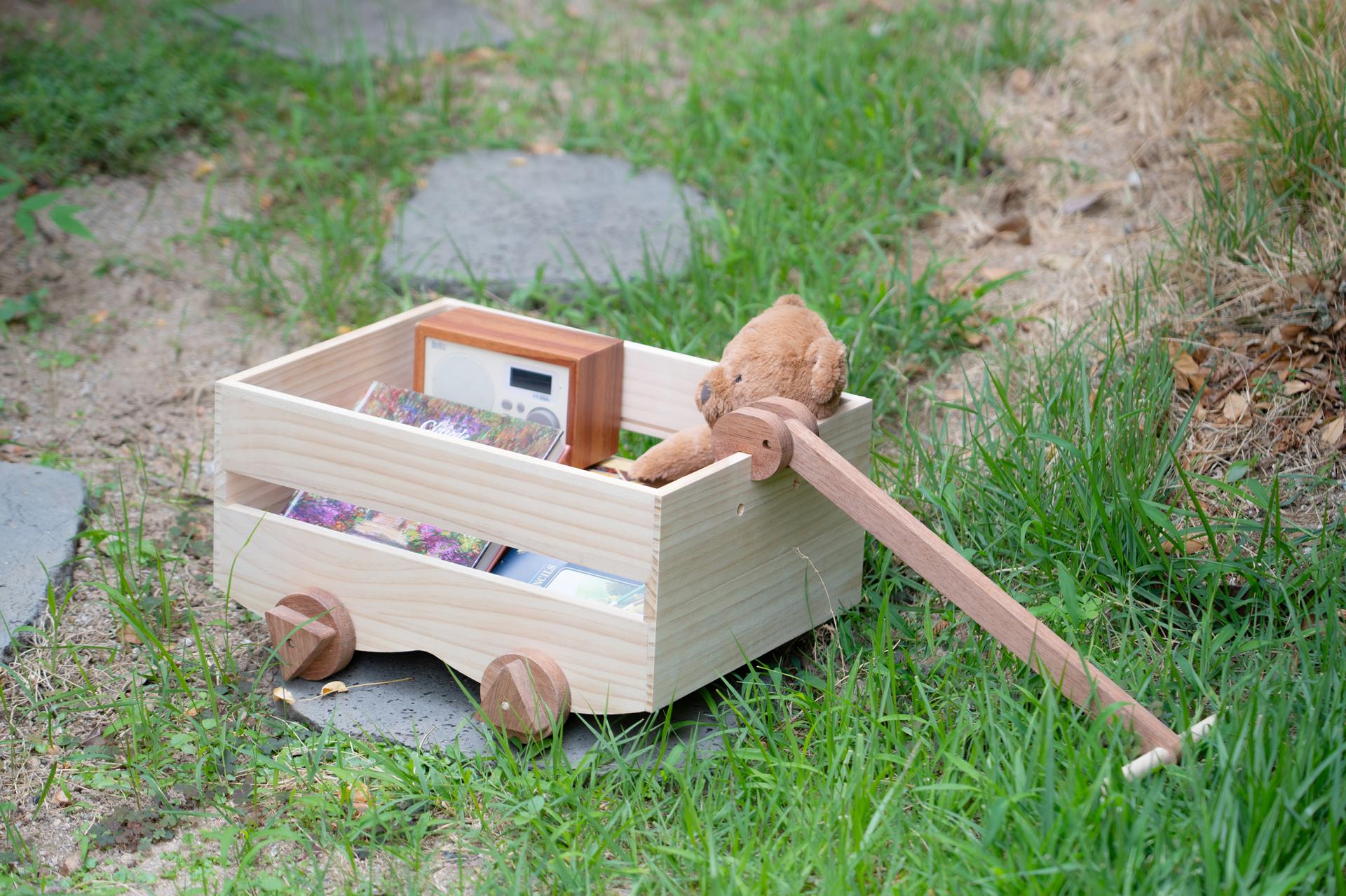 유아 완구로 활용 가능한 나무 손수레입니다.